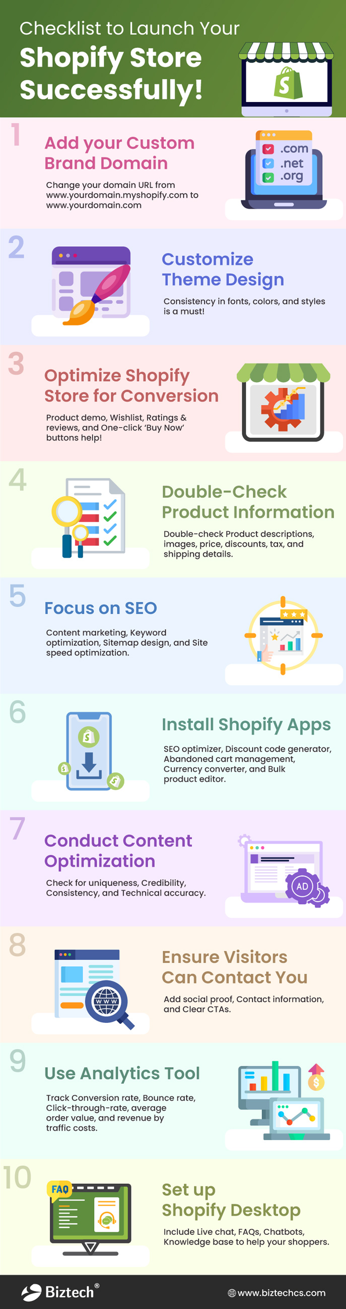 In this day and age, you don’t need to spend a fortune to bring your store online. Platforms such as Shopify are designed to help you go live faster. This infographic from Biztech covers how you can launch a Shopify store successfully:
