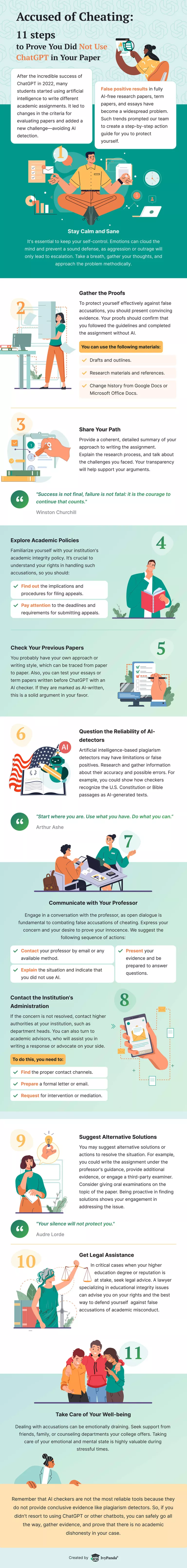 We all know how powerful AI tools such as ChatGPT can be. Unfortunately, some students have used it to cheat, so teachers and professors are now more suspicious of well-written essays. It is even possible to get accused of cheating with ChatGPT when you haven’t as AI detection tools are not perfect. This infographic from Ivy Panda covers 11 steps you to prove you didn’t cheat:
