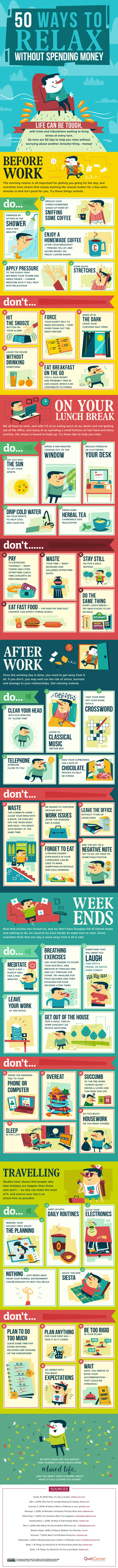 It is no secret that money can’t always make you happy but it can help. You don’t always have to spend money to relax though. This infographic from Quid Corner covers how you can relax without spending money: