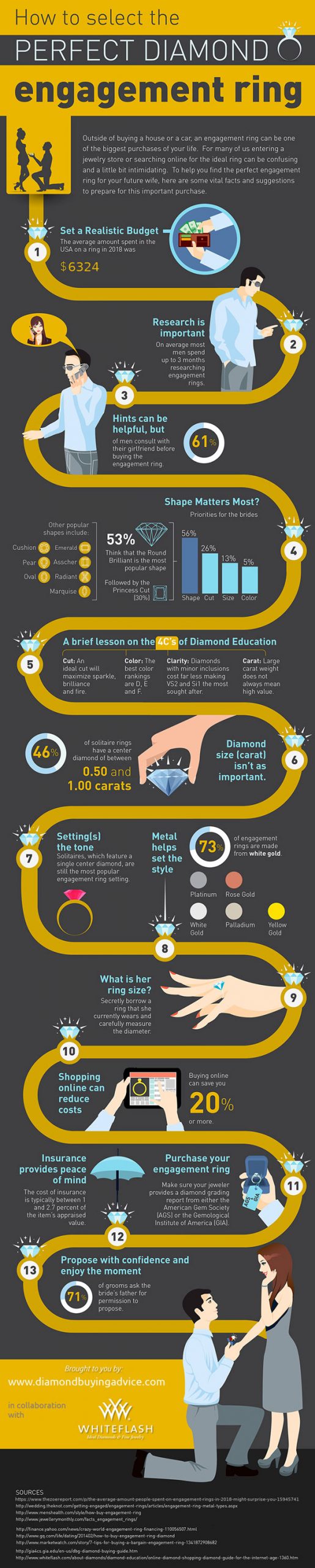 Choosing the perfect engagement ring for your significant other can be one of the biggest purchases of your life. You will have to do your homework to find the perfect ring for your partner that also matches your budget. This infographic from DiamondBuyingAdvice.com has a few tips on that: