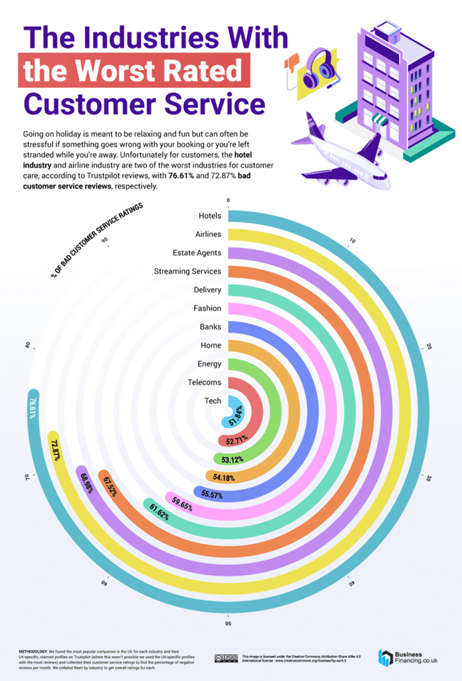 Nothing is more frustrating than dealing with a company with terrible customer service. Unfortunately, not all industries are known for great customer service. This infographic from Business Financing covers industries with the worst rated customer service:
