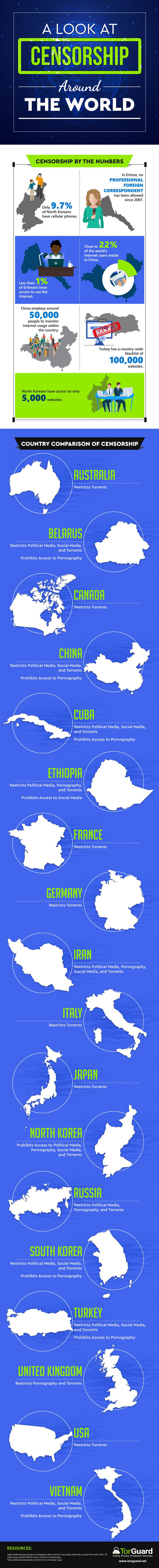 Many of us are lucky to have only minimal internet censorship in our country. In many other countries around the world, access to social media, political, and other sites is limited. This infographic from TorGuard takes a look at internet censorship around the world: