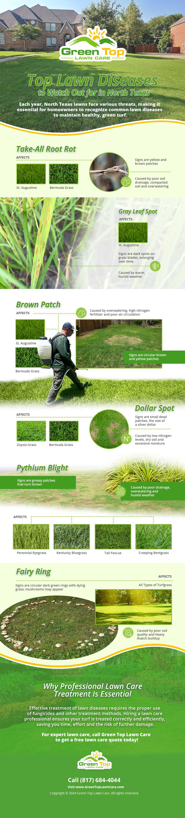 Keeping your lawn in great shape takes more than just mowing it every couple of weeks. You need to watch out for Pythium blights, brown patches, and other lawn diseases. This infographic from Green Top Lawn Care covers top lawn diseases you need to watch out for: