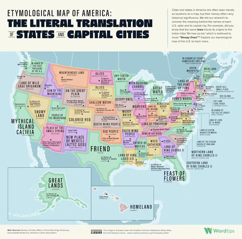 We all know many cities in every state. Have you ever wondered how these cities and states got their name? This infographic from WordTips takes a look:
