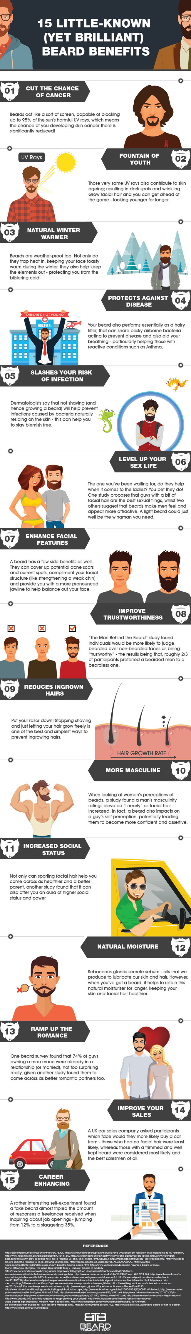 Have you ever thought about growing your beard? It can have certain benefits if you play your cards right. This infographic from Beard Trimmer Bay takes a look at 15 little-known beard benefits: