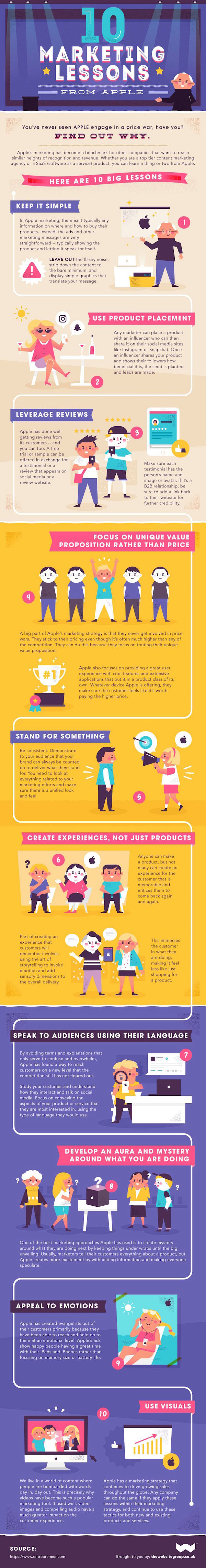 There is no question that Apple’s people have mastered the art of marketing. You can always learn from them to market your own products better. This infographic from the Website Group takes a look a few marketing lessons you can learn from Apple: