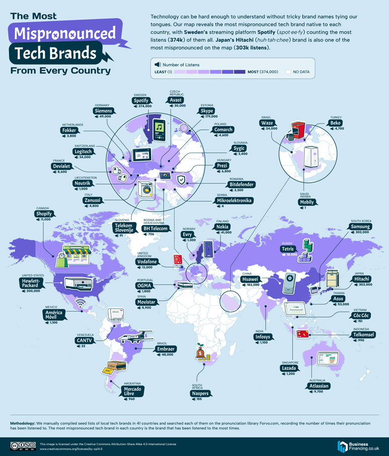 Have you ever had trouble pronouncing brands like Huawei? You are not alone. In fact, there are a bunch of popular brands that are not easy to pronounce. This infographic from Business Financing covers a few of them: