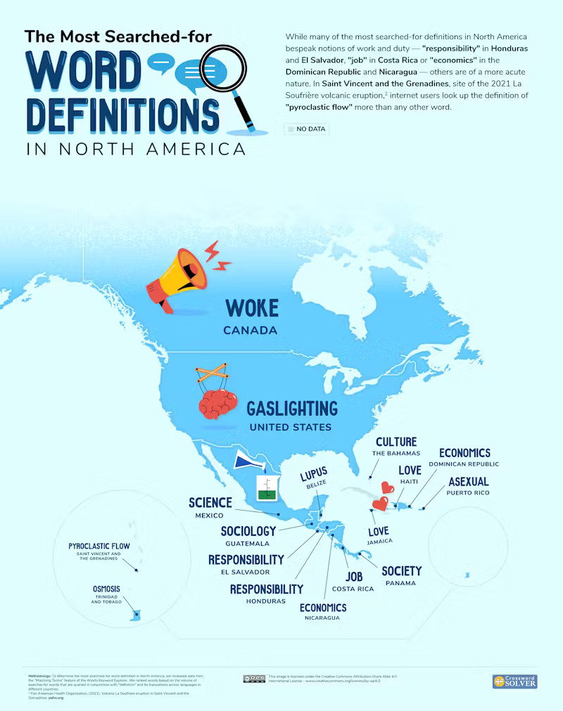 Those of you who have been active on social media know too well about words such as woke and gaslighting. Not everyone can actually define these well. Have you ever wondered which other words are being searched for? This infographic from Crossword Solver takes a look: