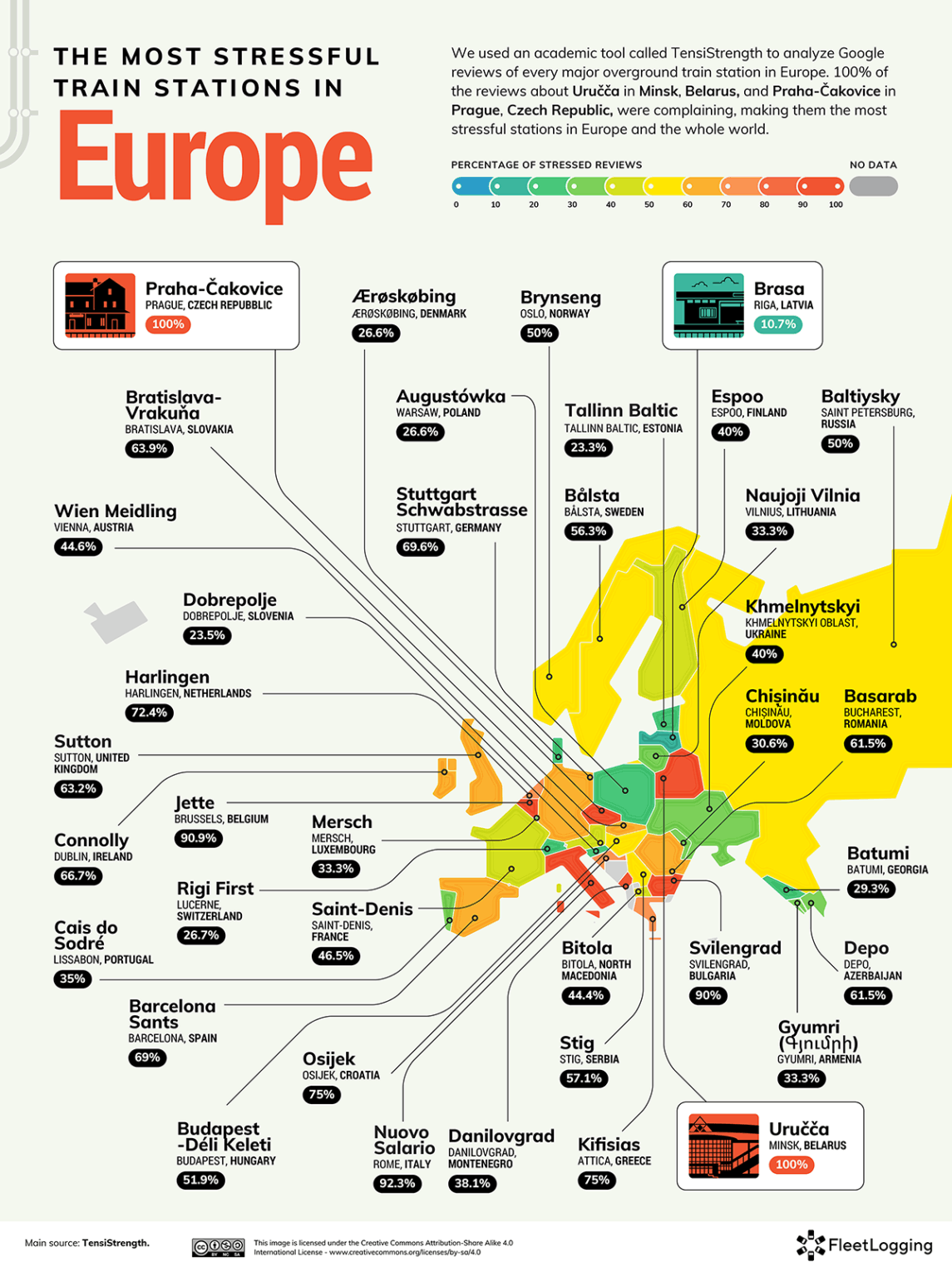 Taking the train to your destination shouldn’t be a stressful experience. Not every train station is secure. You don’t always find a place to sit and you may get a bag search. This infographic from Fleet Logging covers the most stressful stations in Europe: