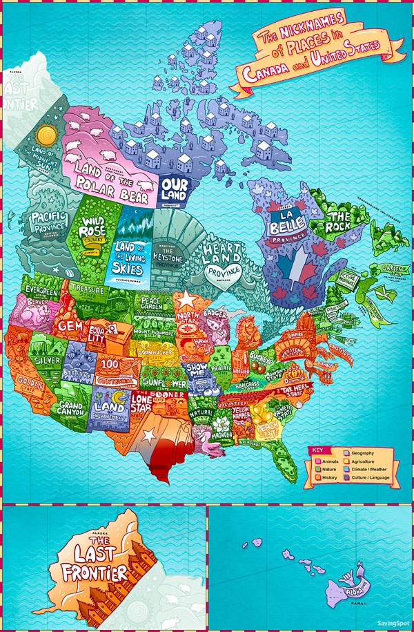 We all love to give nicknames to people and places we love. Plenty of states and provinces in North America have their own nicknames. This visual from CashNetUSA covers a bunch of them: