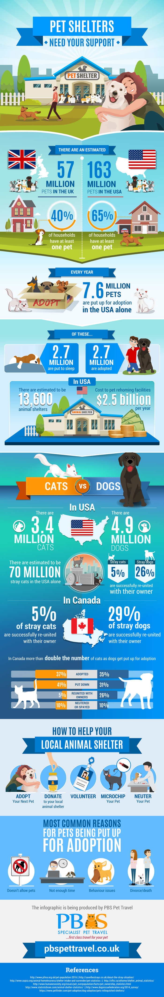 Many of us love pets and have adopted a few of them in the past. You can’t adopt every animal that needs your help though. That’s the reason pet shelters need your help. By volunteering and donating, you will be able to help even more animals. This infographic from PBS Pet Travel covers how you can support your local pet shelters: