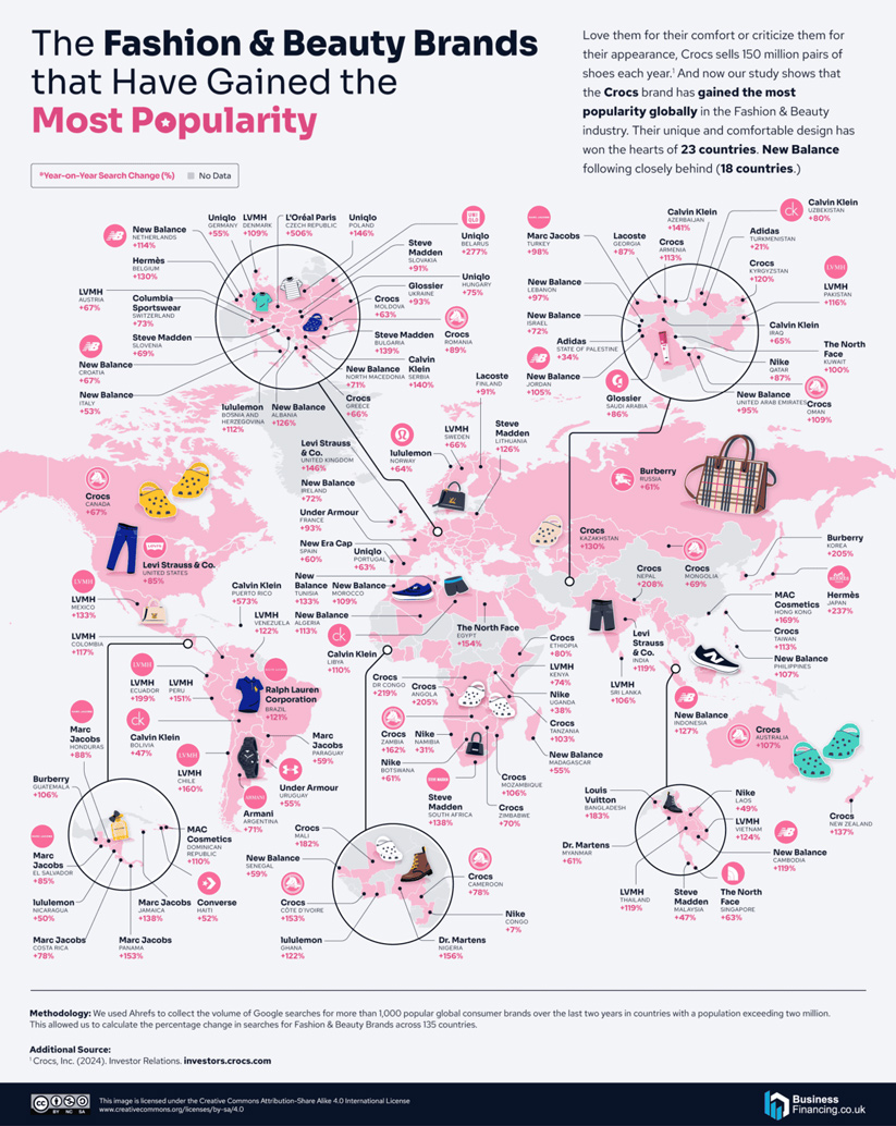 Those of you who are into fashion and beauty products know about New Balance, Under Armour, and various other top brands. Have you ever wondered which brands have gained popularity around the world? This infographic from Business Financing takes a look: