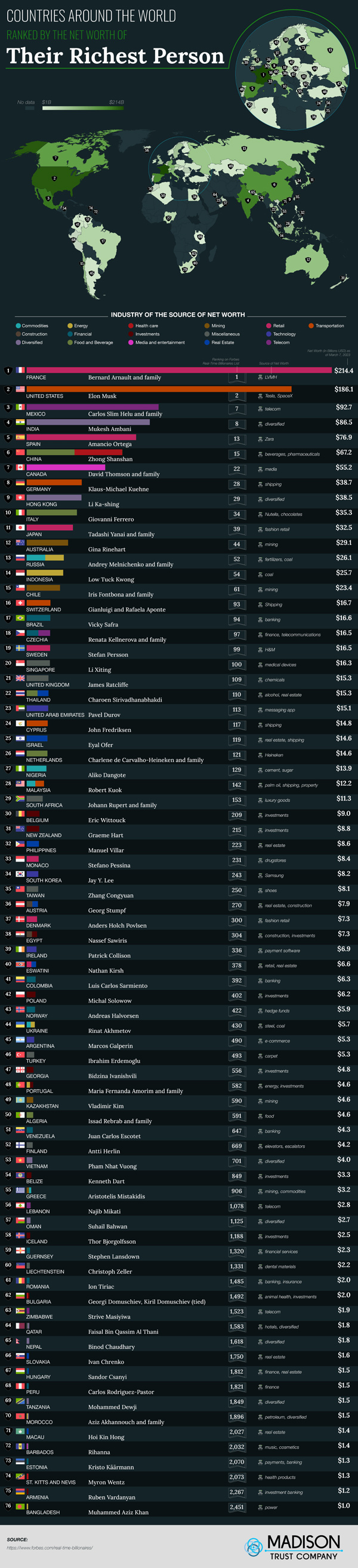 Countries Ranked by Net Worth of Their Richest Person [Infographic]