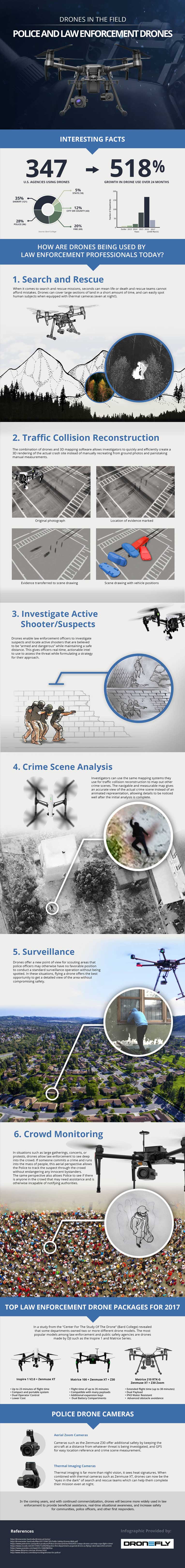 Drones are going to play big roles in our lives in the future. They will be used for delivery, search & rescue mission, and law enforcement. This infographic from DroneFly takes a look at the future of police and law enforcement drones: