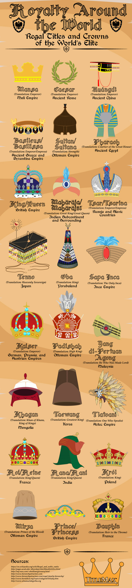 When it comes to royalty, most of us know about King Charles and British royal family. There are plenty of other regal titles and crowns around though. This infographic from TitleMax covers royal titles from around the world:
