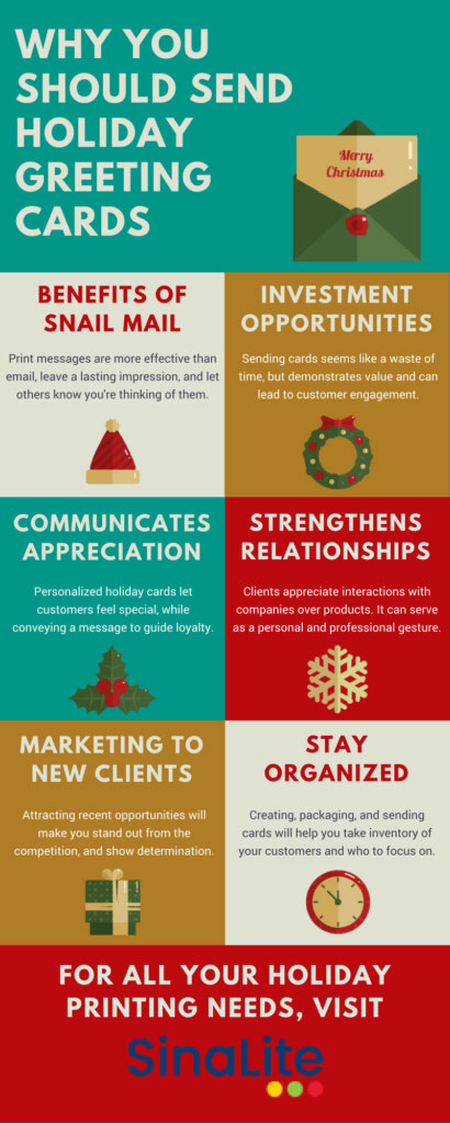 Many of us have been lazy about sending greeting cards to people we know in the past. Businesses can’t afford to ignore their customers this time of the year though. SinaLite has published a visual that covers many reasons you should be sending holiday greeting cards to your clients: