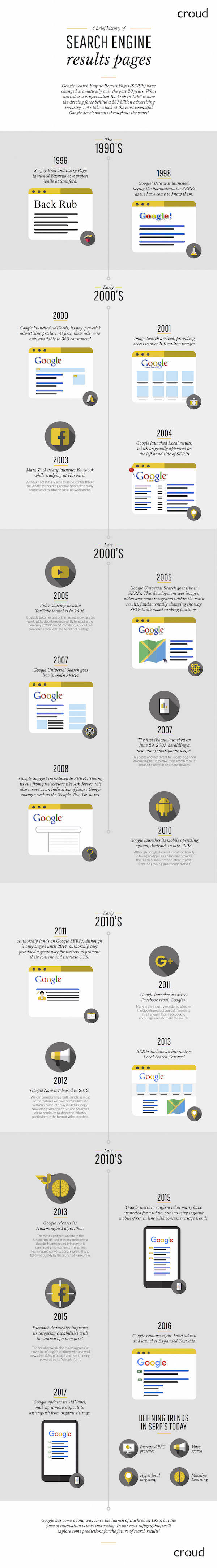 Search engine results pages have changed a lot over the years, so getting on the first page may not be as straightforwards as before. This infographic from Croud covers a brief history of the SERPs: