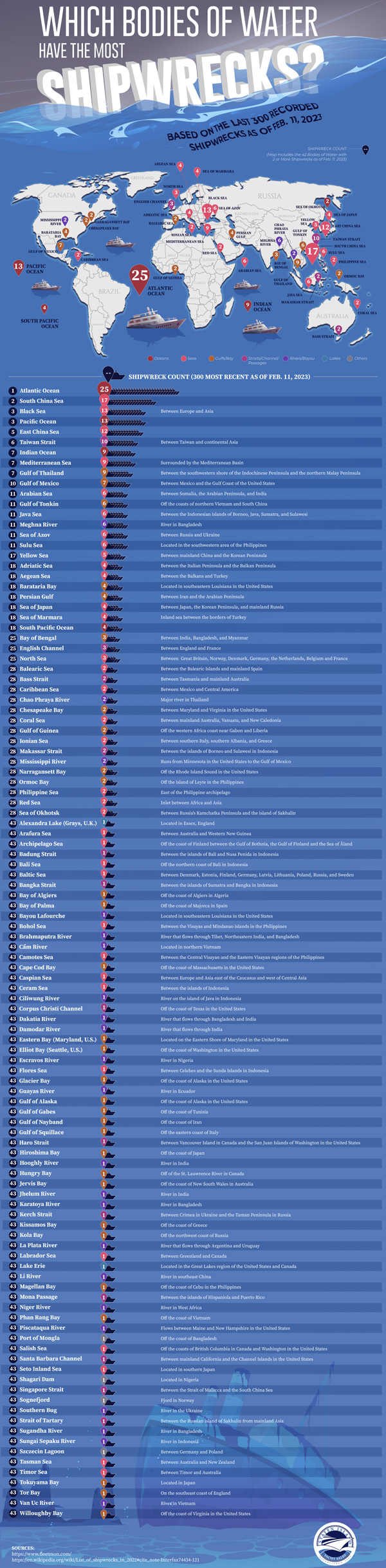 Bodies of Water with the Most Shipwrecks [Infographic]