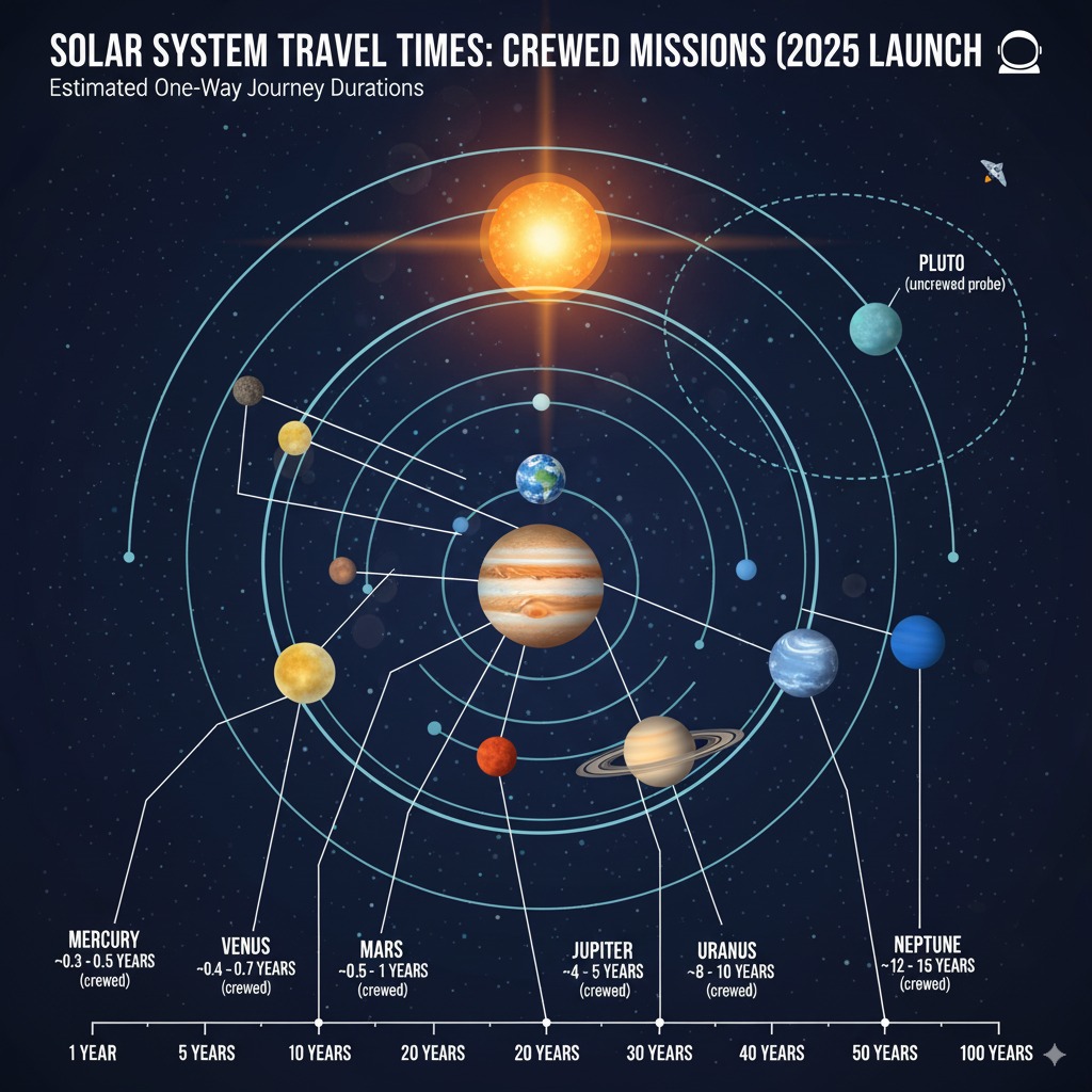 In the next few decades, we are going to start exploring other planets in our solar system. It will take us a few years to reach Neptune and Pluto though. This infographic shows solar system travel times: