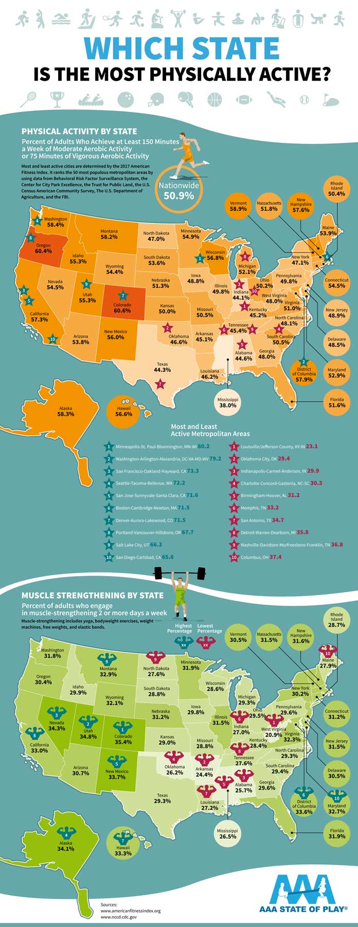 We all understand the importance of exercise and staying active. As it turns out, not every state in the U.S. has the same percentage of healthy residents. This infographic from AAA State of Play takes a look at which states are the most physically active: