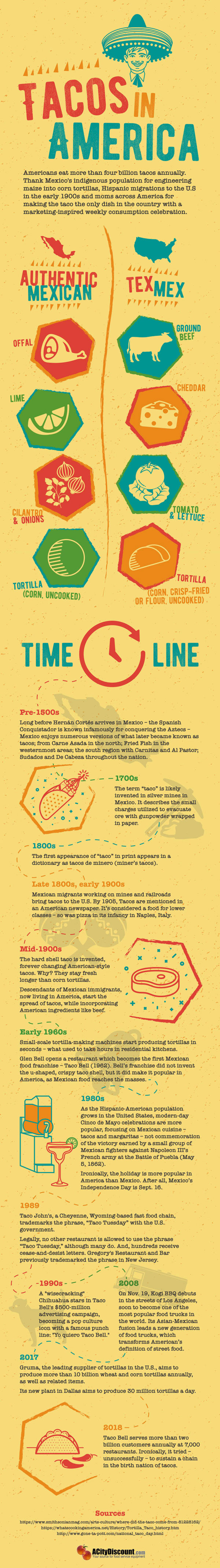 Plenty of us love tacos. Have you ever wondered how it became more popular in the U.S.? This infographic from ACityDiscount takes a look: