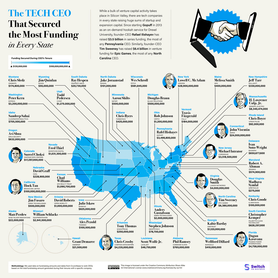 Tech CEOs That Secured The Most Funding In Every State [Infographic]