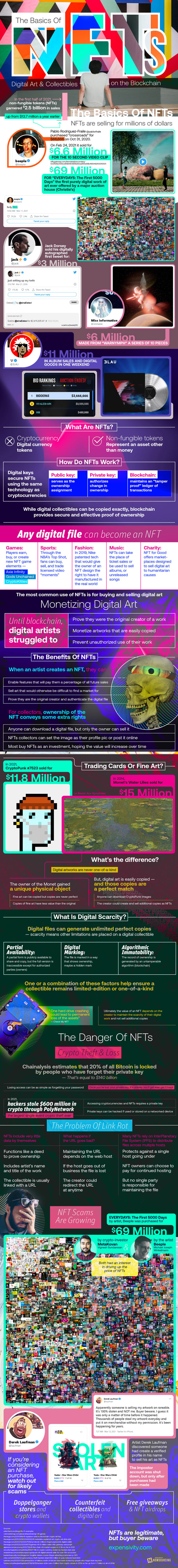 Plenty of people are excited about NFTs these days. If you have not dealt with the blockchain and cryptos in the past, understanding NFTs can take a bit of time. This infographic from Expensivity helps you make sense of non-fungible tokens: