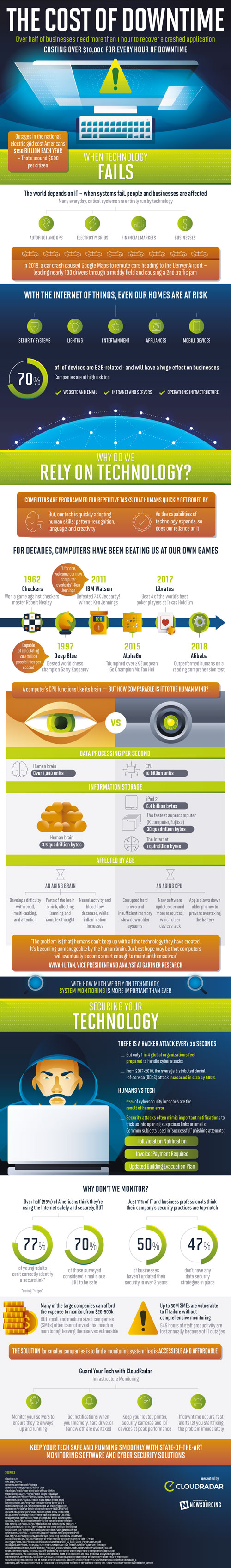 Technology fails on all of us. It can be quite costly to businesses when their downtime is more than just a few minutes. This infographic from CloudRadar covers the cost of downtime for businesses: