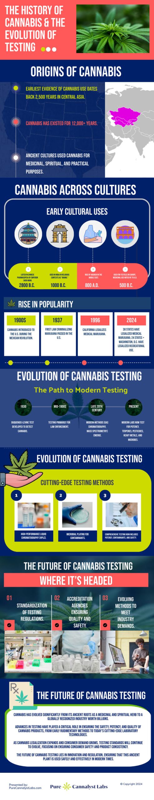Cannabis has a rich, complex history. It has been used by humans for thousands of years, originating in Central Asia around 500 BC. It has medicinal, recreational, cosmetic, and culinary applications. This infographic from Pure Cannalyst Labs takes a look at the origins of cannabis: