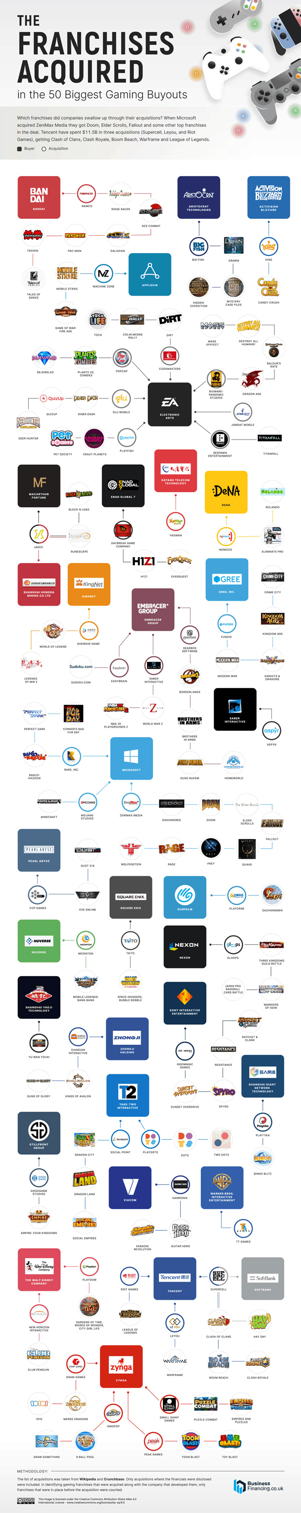 Many gaming companies have been acquired by much larger companies in the past. Companies such as Microsoft have spent billions acquiring gaming studios. This infographic from Business Financing covers which companies have made the biggest gaming acquisitions: