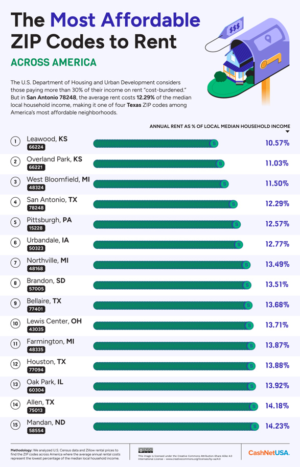 It is no secret that rent is too high in many major cities. Depending on your location, there are zip codes in which you may be able to find more affordable rent. This infographic from CashNetUSA visaulizes them:
