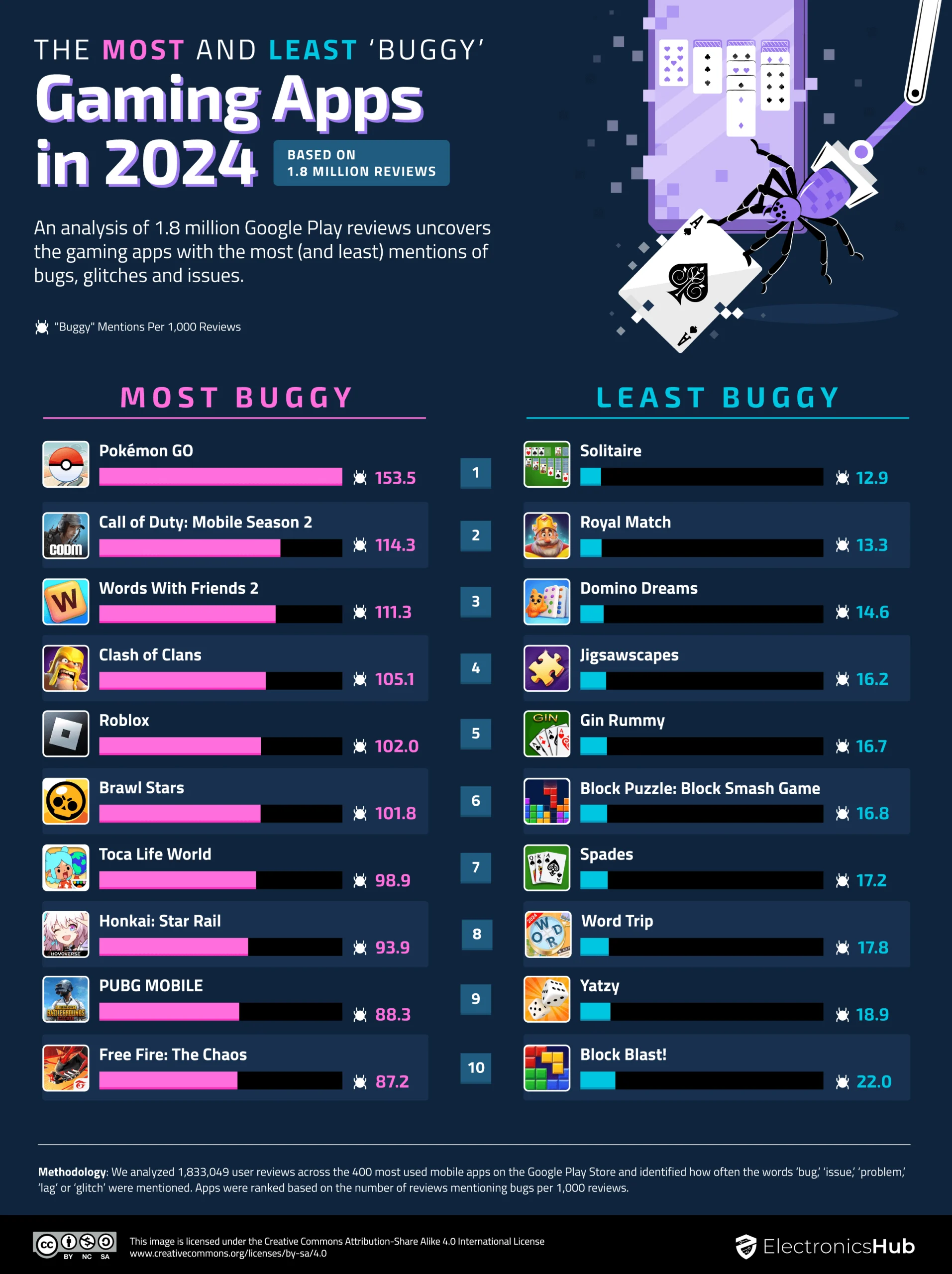 A lot of people play games on their mobile devices. Many popular games have annoying bugs though. This infographic from Electronics Hub covers the most and least buggy gaming apps this year: