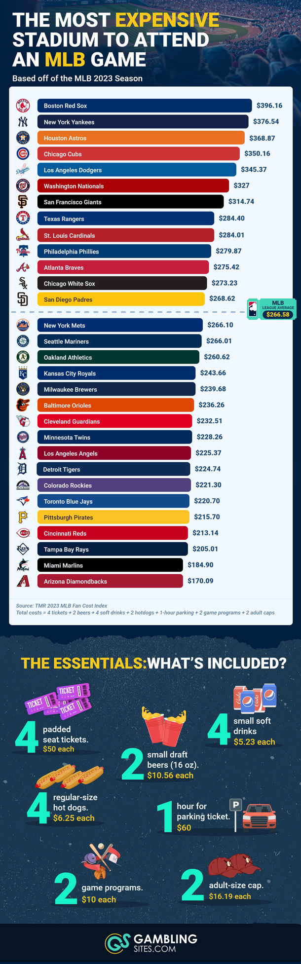 Watching baseball on TV is fun but it is even more so when you an attend a game in person. Attending MLB games can cost a considerable amount of money. This infographic from GamblingSites covers the most expensive stadiums to attend a MLB game in 2024: