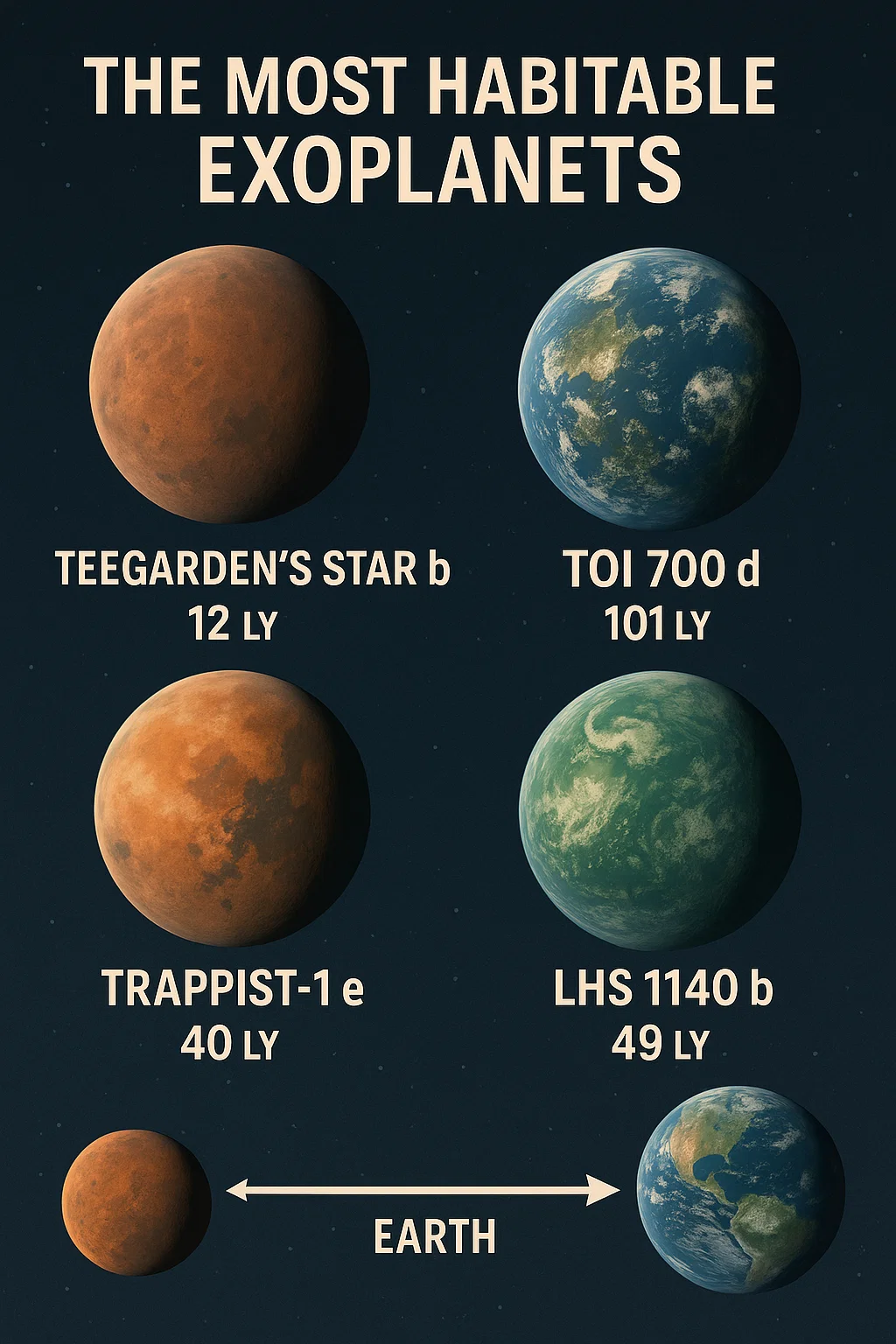 Many scientists believe that we will colonize other planets in the future. Finding an exoplanet with habitable conditions will make it much easier for our species to do so. This infographic covers the most habitable exoplanets and their distance from Earth: