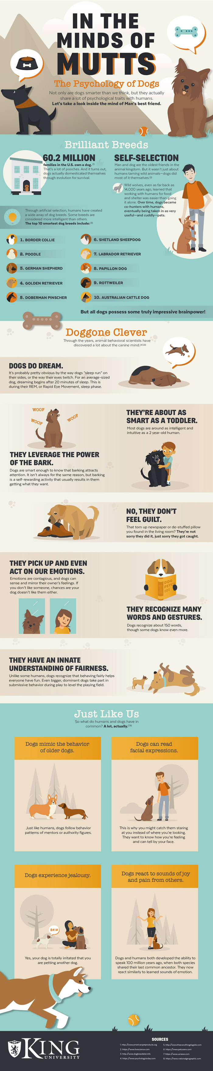 Many of us love dogs and have adopted a few of them in the past. They are not only incredibly loyal but smarter than people think. This infographic from King University takes a look at some interesting facts on psychology of dogs: