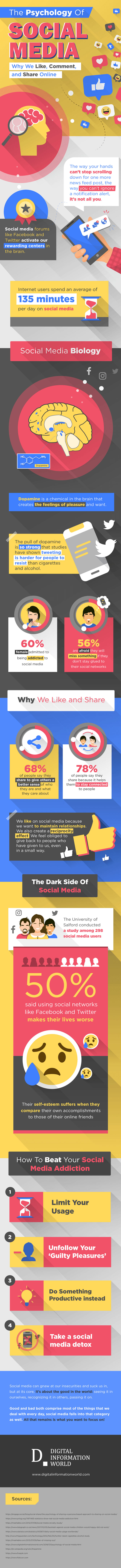 Many of us are addicted to Instagram, Facebook, Twitter, and other social networking sites. Have you ever wondered why we like, comment, and share content online? This infographic from Digital Information World gives you a better idea: