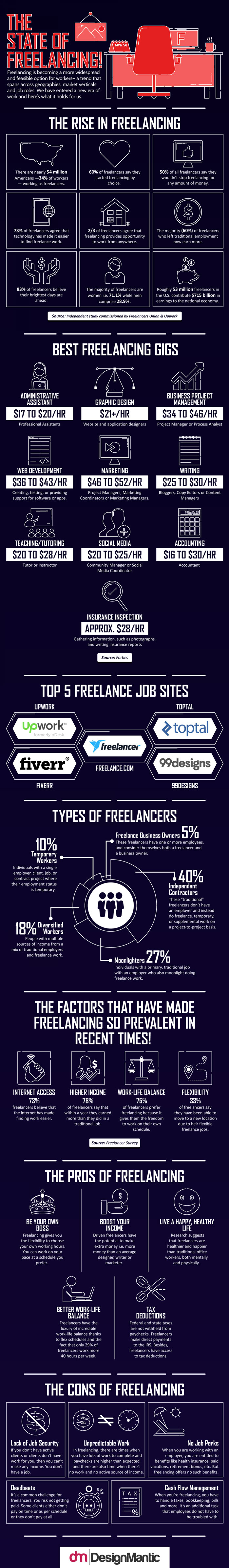 Freelancing is on the rise. More people are now looking at it as a feasible option to make a living. This infographic from DesignMantic takes a look at a few interesting facts and stats on freelancing: