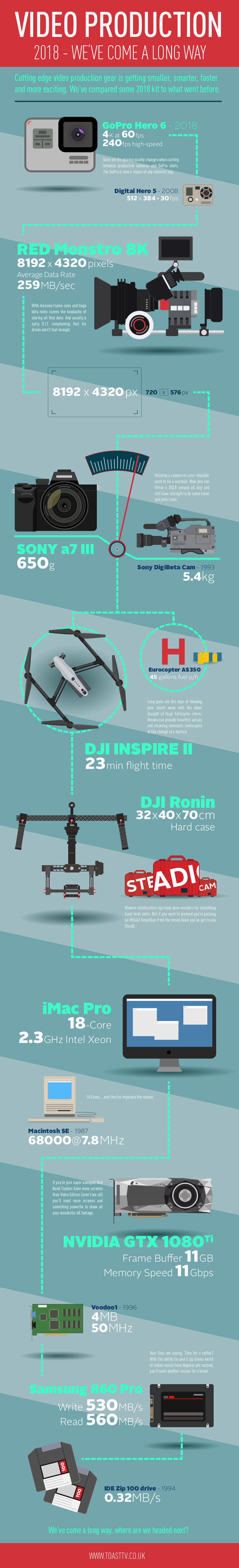 These days people can make high quality video for a whole lot cheaper. Action cams, smartphones, and other video production gear keep improving all the time. This infographic from ToastTV takes a look at the state of video production gear: