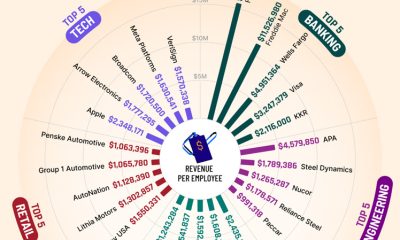 Apple and Amazon are just a couple of the largest companies around the world. Did you know that they don’t have the largest revenue? This infographic from HowMuch visualizes the world’s largest companies by revenue: