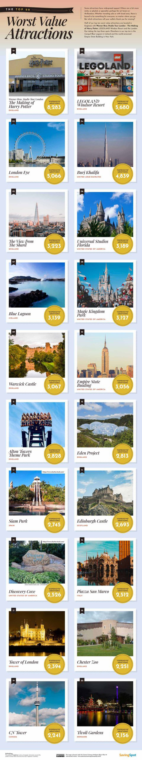 Plenty of people travel around the world to see famous attractions. Many of them look much better on paper though. This infographic from CashNetUSA shows the worst value tourist attractions according to visitors: