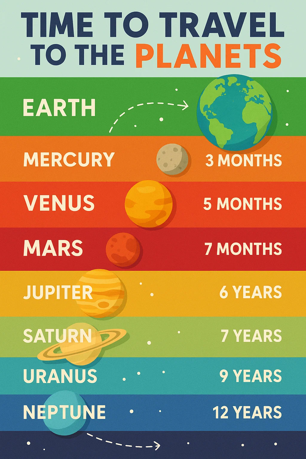 We all know that it takes a few months to take a trip to Mars. It’s much shorter to do so when it comes to the moon (about 3 days). This infographic covers the time it takes to travel to various planets in our solar system: