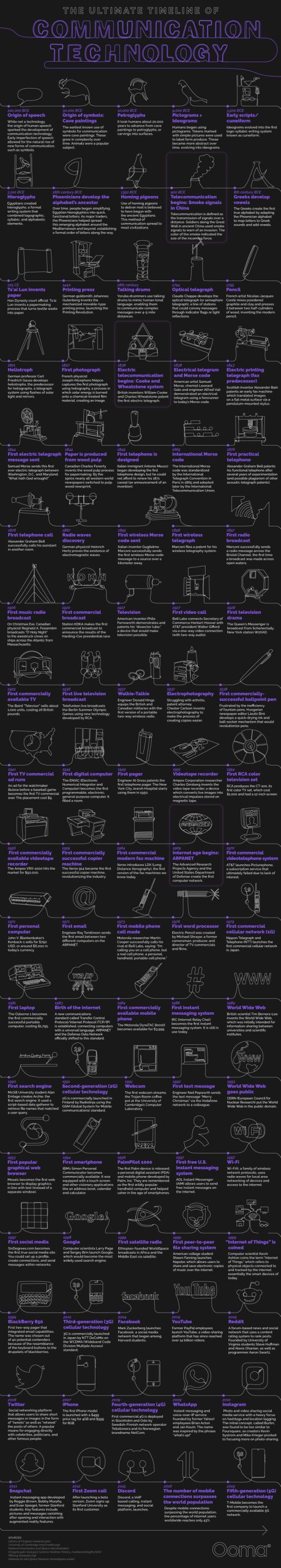 In this day and age, we use smartphones and other communication devices without thinking about when they were invented and what other methods were used in the past. This infographic from Ooma shows a timeline of communication technologies from 100,000 BCE to now: