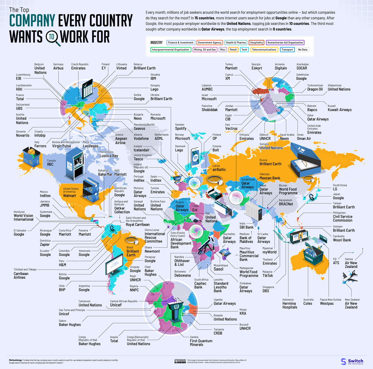 It is no secret that Google is one of the top companies a lot of people around the world want to work for. Have you ever wondered which other companies are popular among job seekers? This infographic from Switch on Business takes a look: