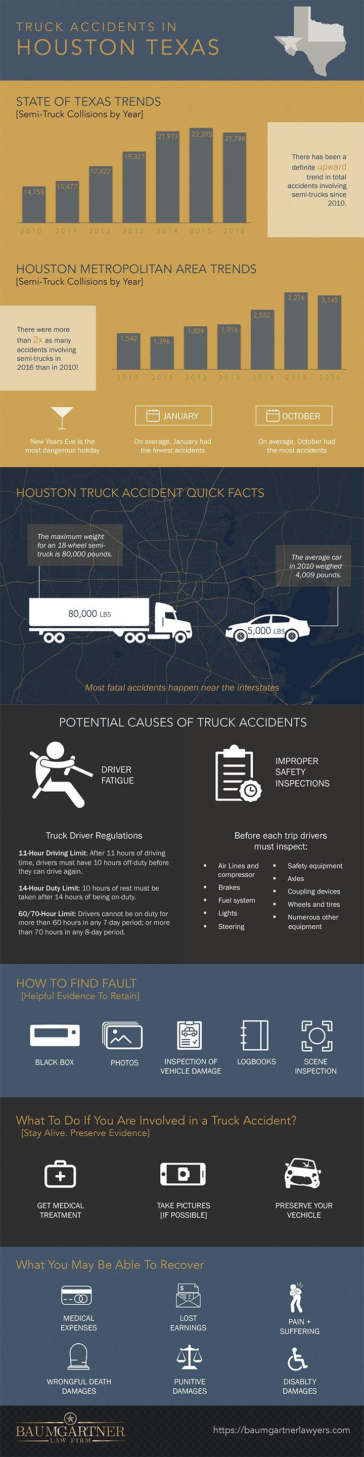 Truck accidents can be quite deadly and costly. Driver fatigue and improper safety inspections can lead to trouble for truck drivers. You’ll never know when accidents can happen but this infographic from BaumGartner Law Firm helps you figure out what do just in case: