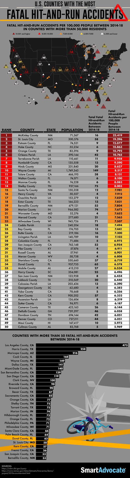 Hit & run accidents claim thousands of lives every year. While they happen all over the U.S, they are more frequent in certain countries. This infographic from SmartAdvocate takes a look: