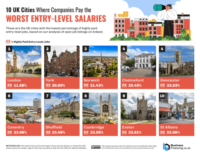 UK Cities with Worst Entry Level Salaries [Infographic]