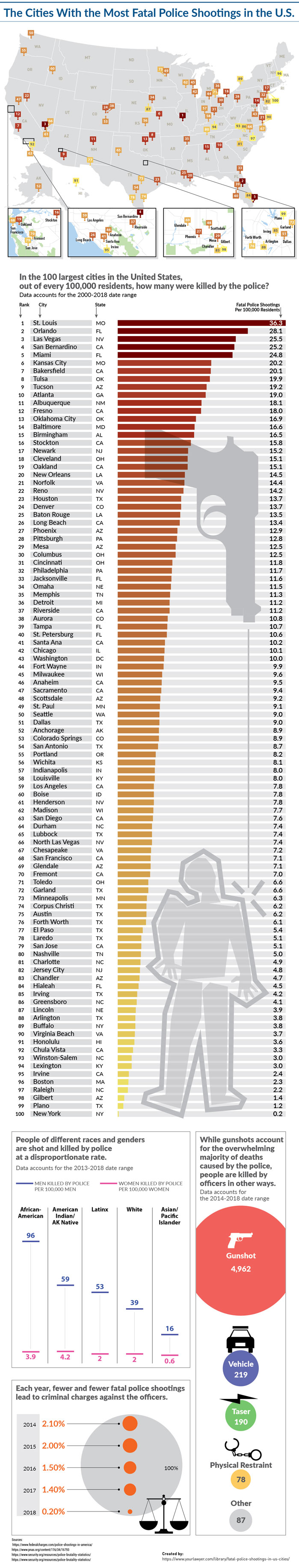 We hear about police shootings and accidents regularly in this part of the world. Did you know that St. Louis has the most fatal police shootings per 100,000 residents in America? This infographic from Your Lawyer takes a look at the cities with most fatal police shootings in the U.S: