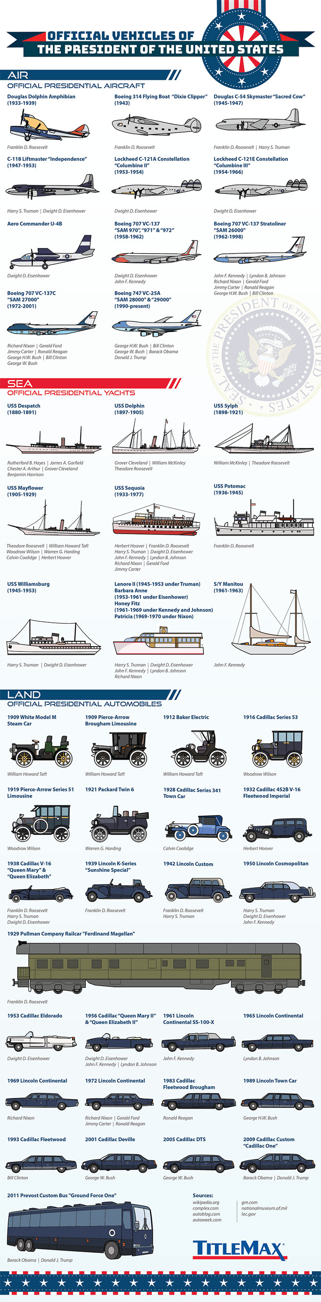 Official presidential vehicles have gone through many changes over the years. It is fair to say that they have all kinds of fancy features. This infographic from TitleMax covers the official vehicles of the United States President over the years: