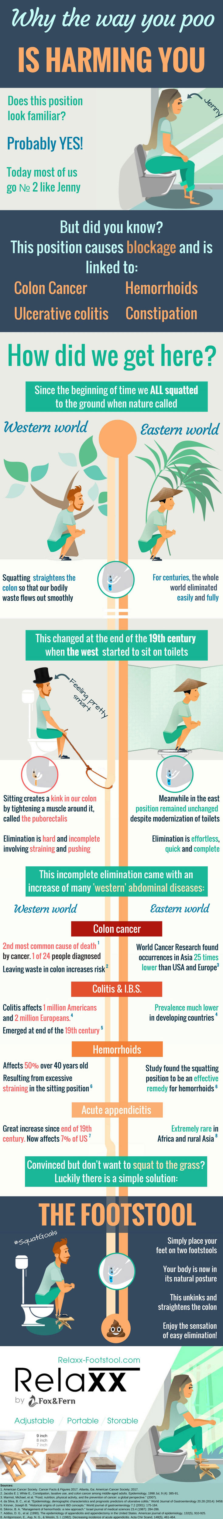 Not maintaining proper posture while pooing could come back to haunt you as you get older. This infographic by Fox & Fern takes a look at why investing in a foot stool for the rest room is a good idea: