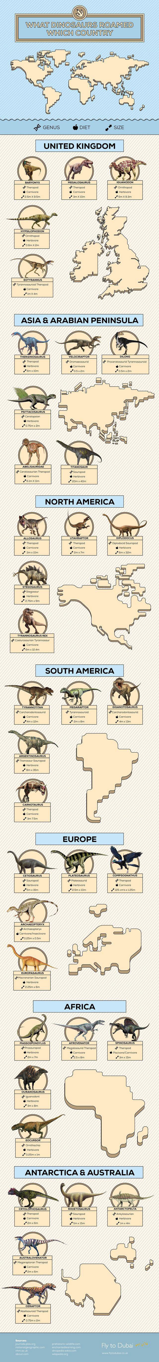 Many of us are fascinated by dinosaurs. There have been plenty of movies made about them. Have you ever wondered where these magnificent creatures roamed around the world? This infographic from Fly to Dubai takes a look: